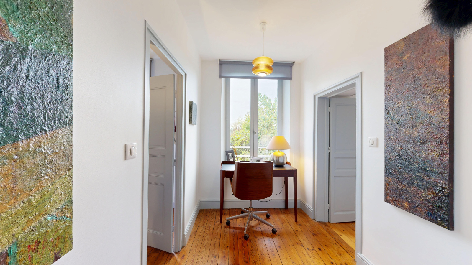 •2 escaliers permettent d'accéder au 1er étage donnant sur 2 espaces de la maison: l'un sur un palier donnant sur deux chambres spacieuses avec salle d’eau et wc, puis sur l'autre palier une chambre avec salle d’eau et WC.