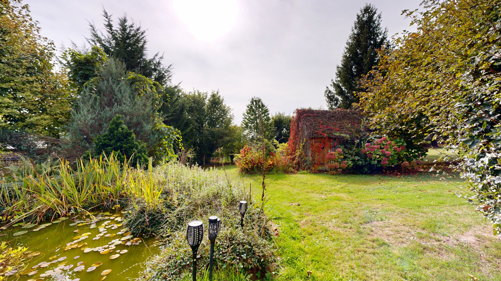 Le terrain entièrement clôturé de plus de 9 000 m², arboré (nombreuses essences variées) et soigneusement entretenu, constitue un véritable havre de paix. Les dépendances complètent l’ensemble : chalet et abri à bois