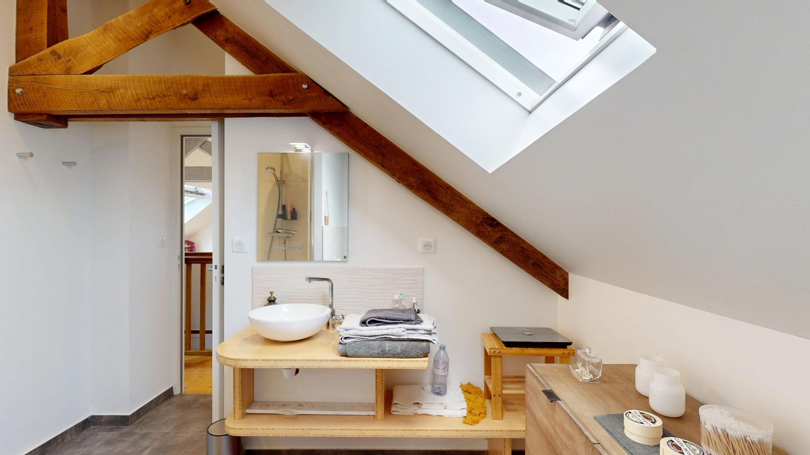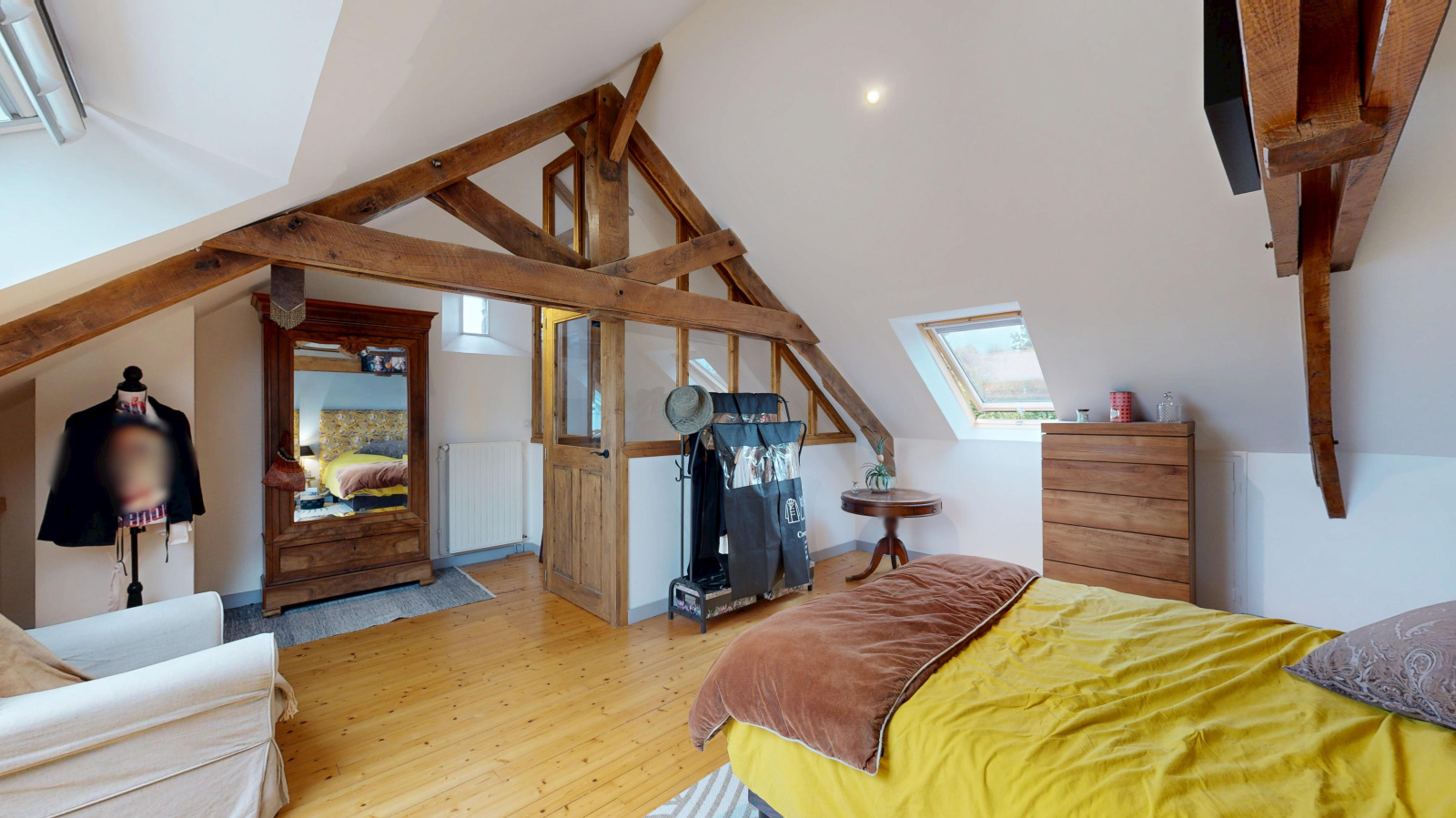•Au 2nd étage : 2 chambres sous mansardes dont l'une avec avec salle d'eau se rejoingnent pour créer un très bel espace parental.