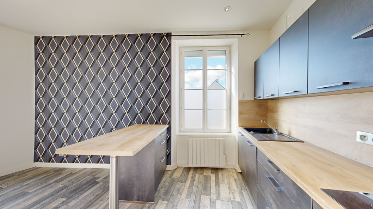 Maison 5 pièces de 78M2 composé en RDC d'une entrée, Wc indépendant, Cuisine ouverte sur salon/séjour.