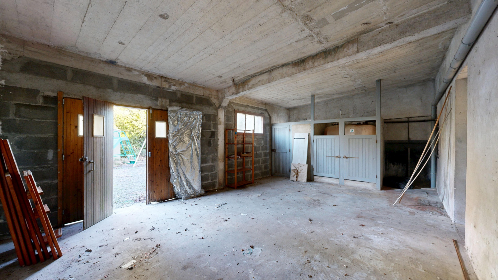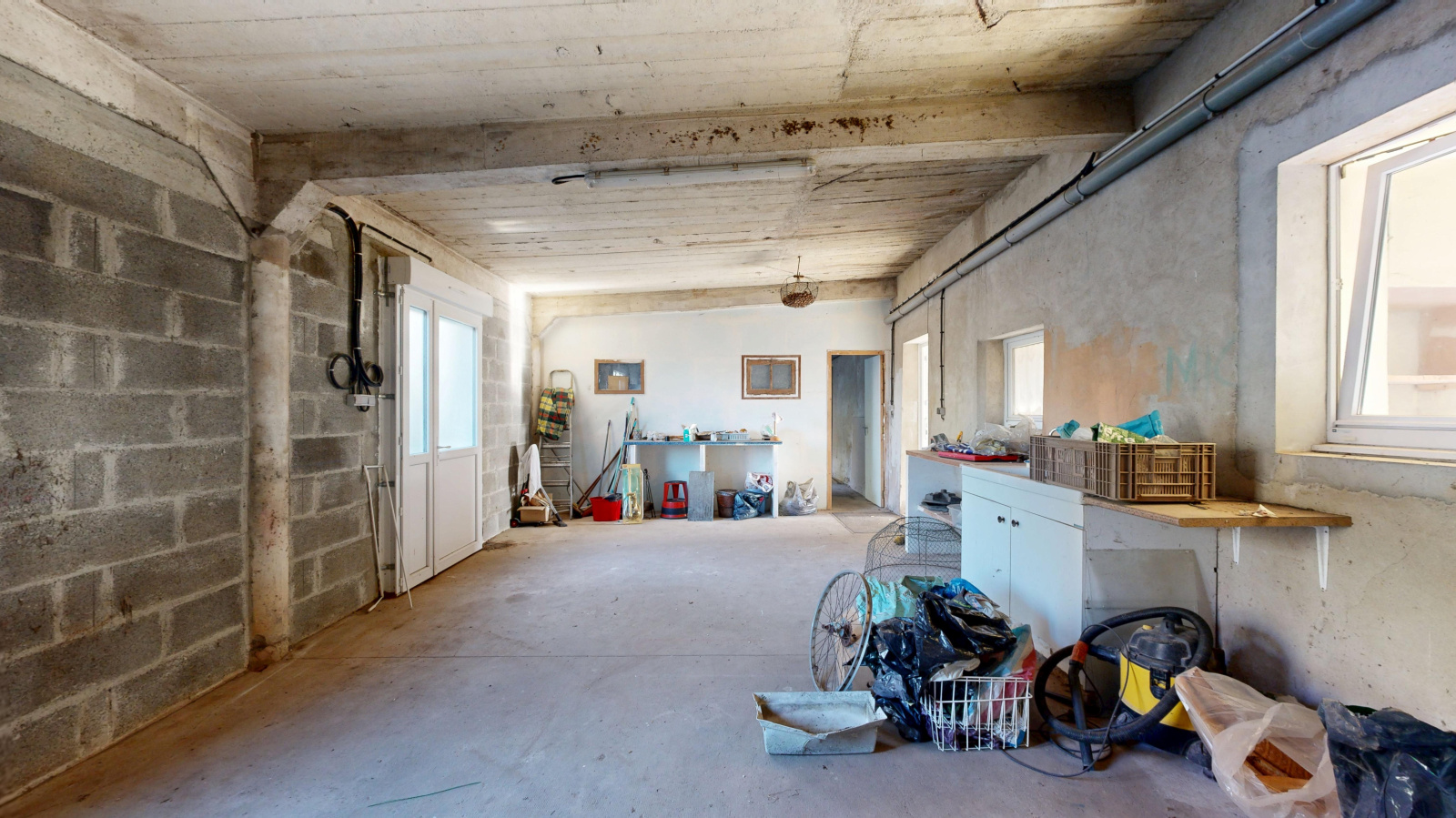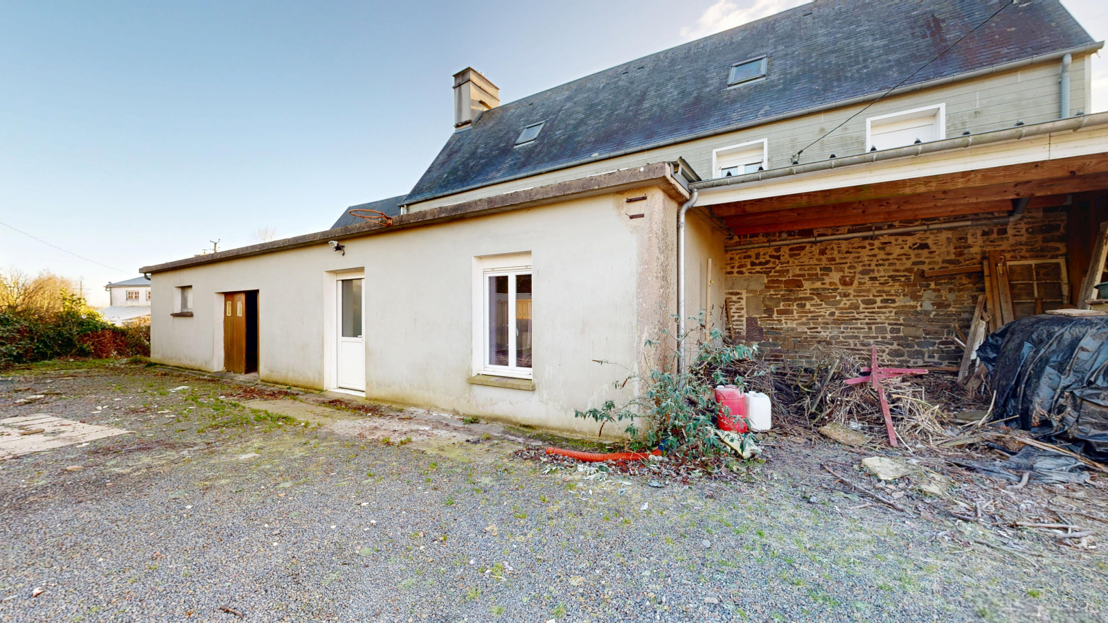 L'ancien préau , dorénavant fermé offre un volume complémentaire à usage d’atelier, garage, arrière-cuisine ou espace de stockage.