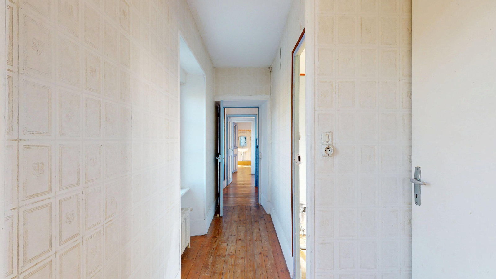 A l'étage : couloir desservant 4 chambres dont une avec salle d’eau, WC indépendant