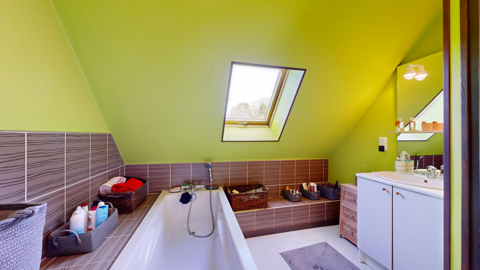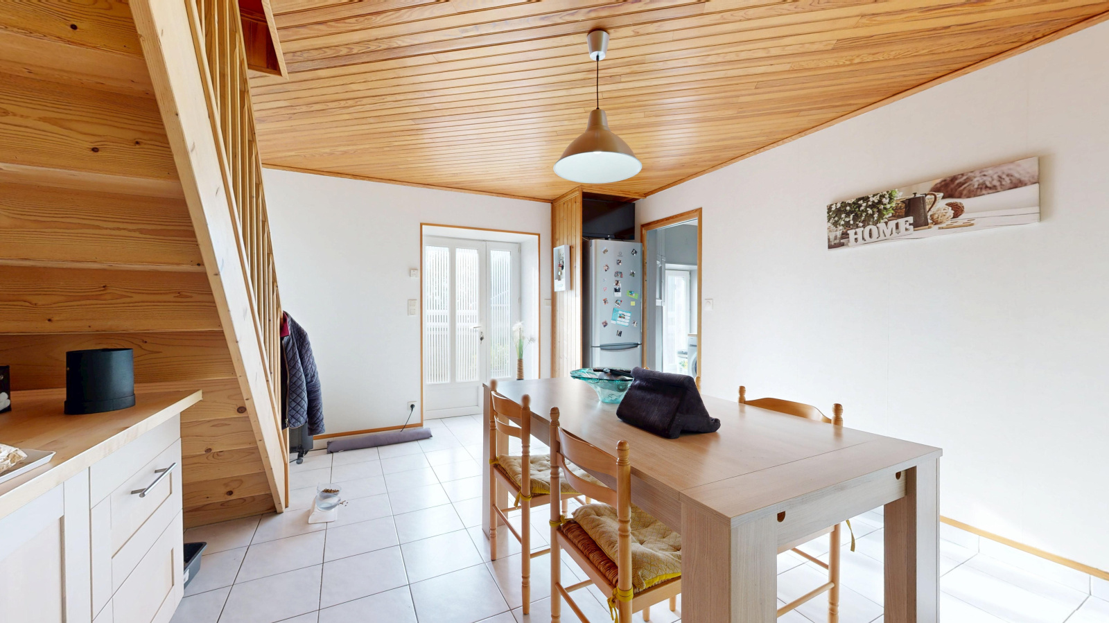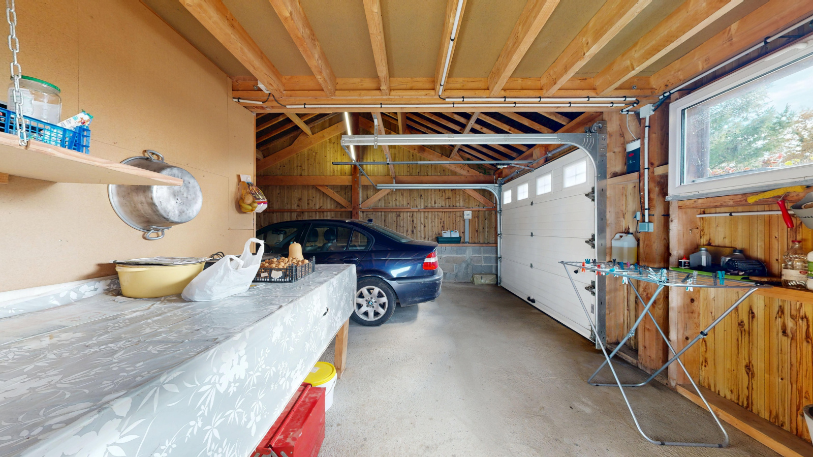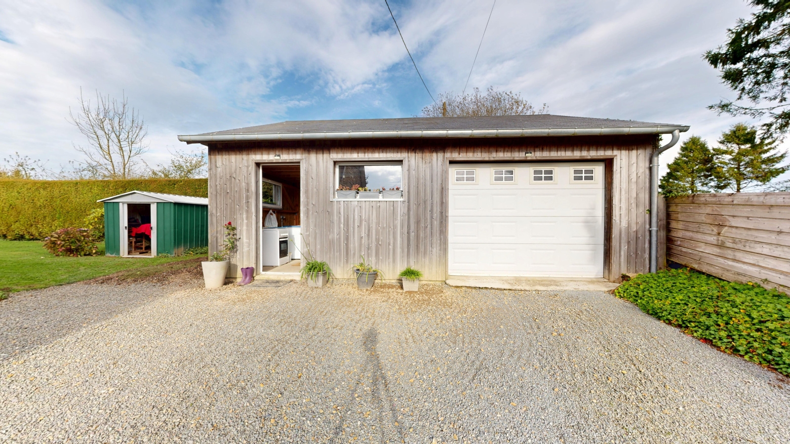 La maison bénéficie également d’une véranda très lumineuse, véritable pièce à vivre supplémentaire, et d’un grand garage avec dalle béton d’environ 50 m² offrant de multiples possibilités de rangement ou d’atelier.