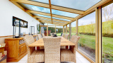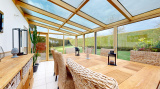Elle se compose d’un salon convivial avec cheminée ouverte, d’une salle à manger et d’une cuisine.