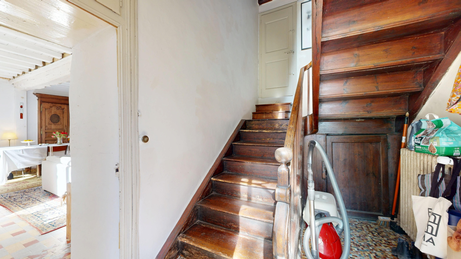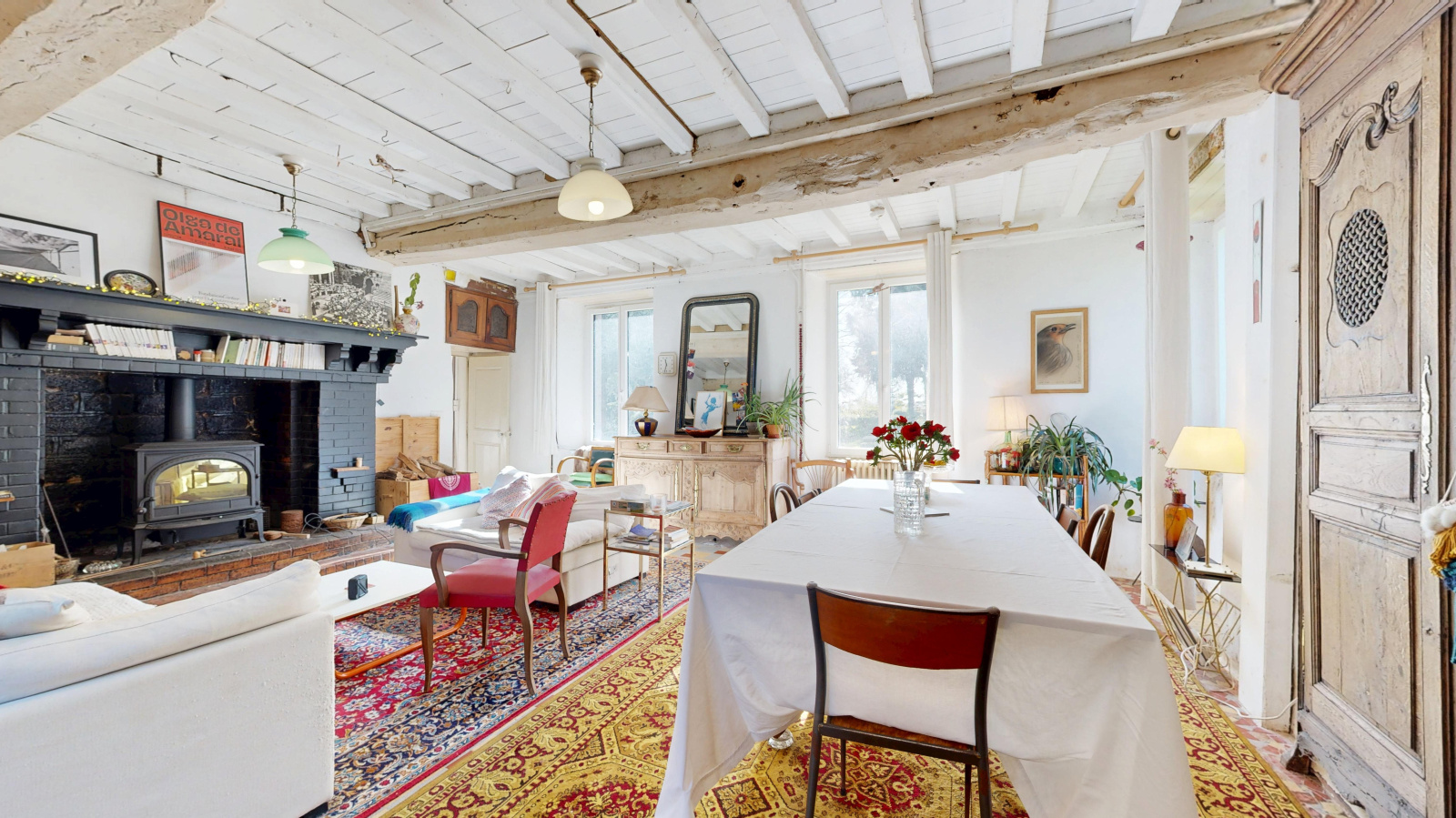 Au rez-de-chaussée : une entrée, un séjour/salon d’environ 36 m² avec poêle à bois, une cuisine, un second salon