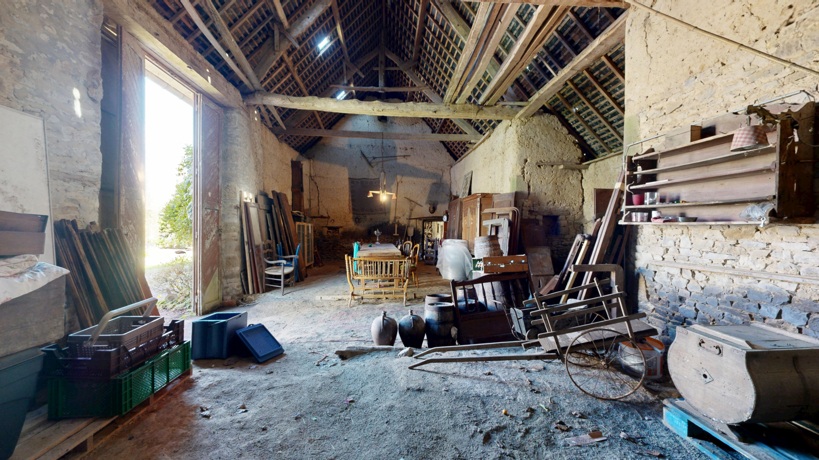 Une grange d’environ 150 m² au sol avec une très belle hauteur sous plafond, offrant de nombreuses possibilités d’aménagement