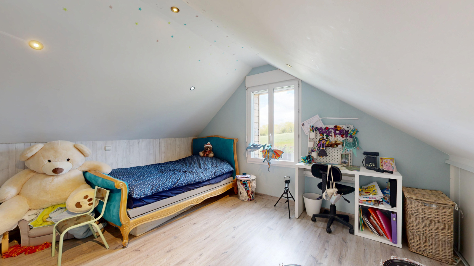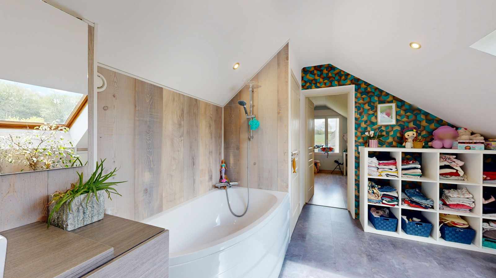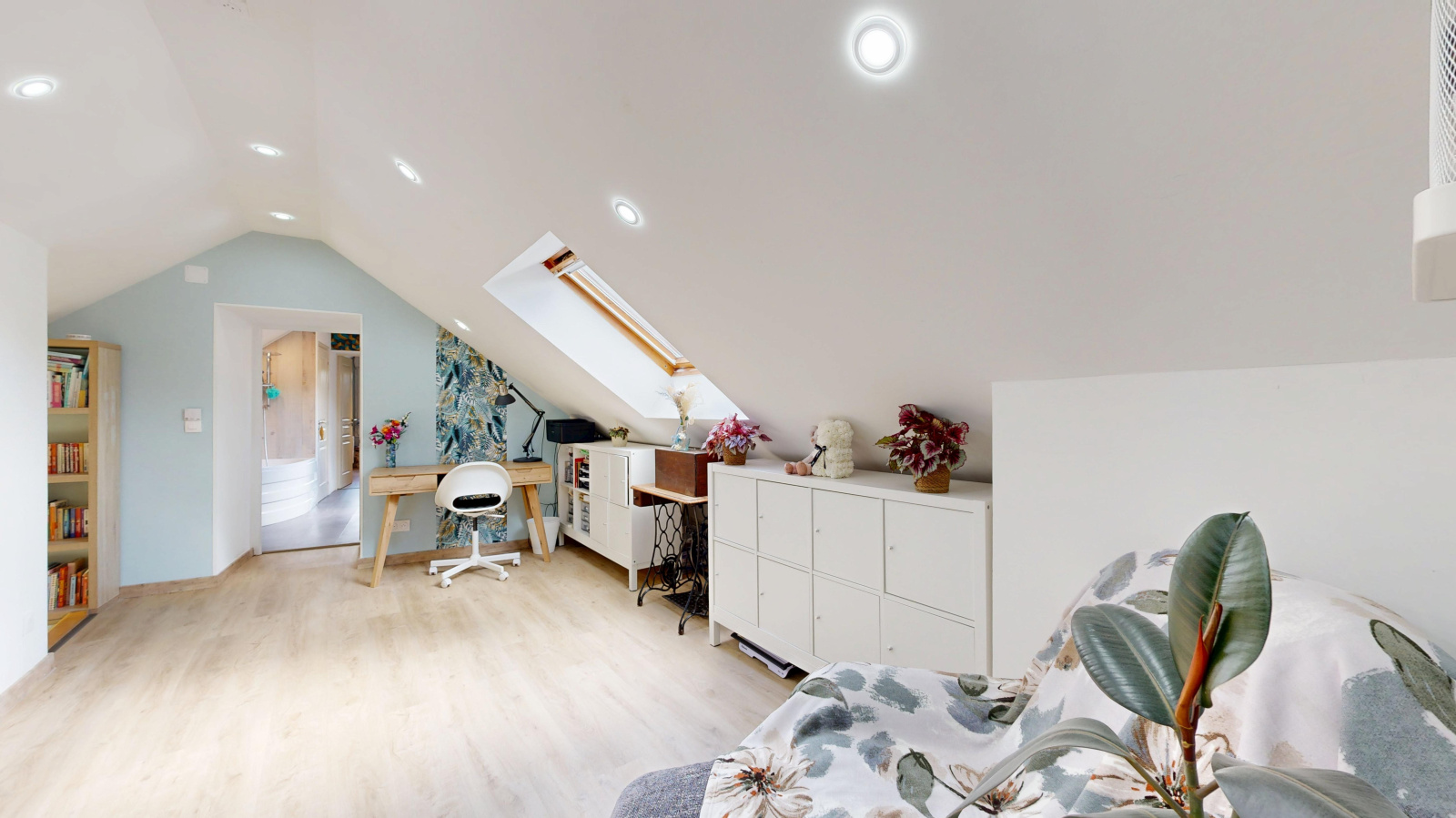 Un palier lumineux distribue deux chambres, une salle de bain et un WC indépendant.