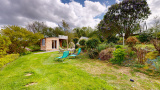 Le jardin, ponctué d’arbres fruitiers (abricotier, cerisier, pêcher, poirier, fruits rouges), accueille également : une cabane de jeux pour enfants / une petite serre / un cabanon / un abri avec eau, électricité et volet roulant solaire, adapté au rangement ou au bricolage.