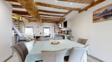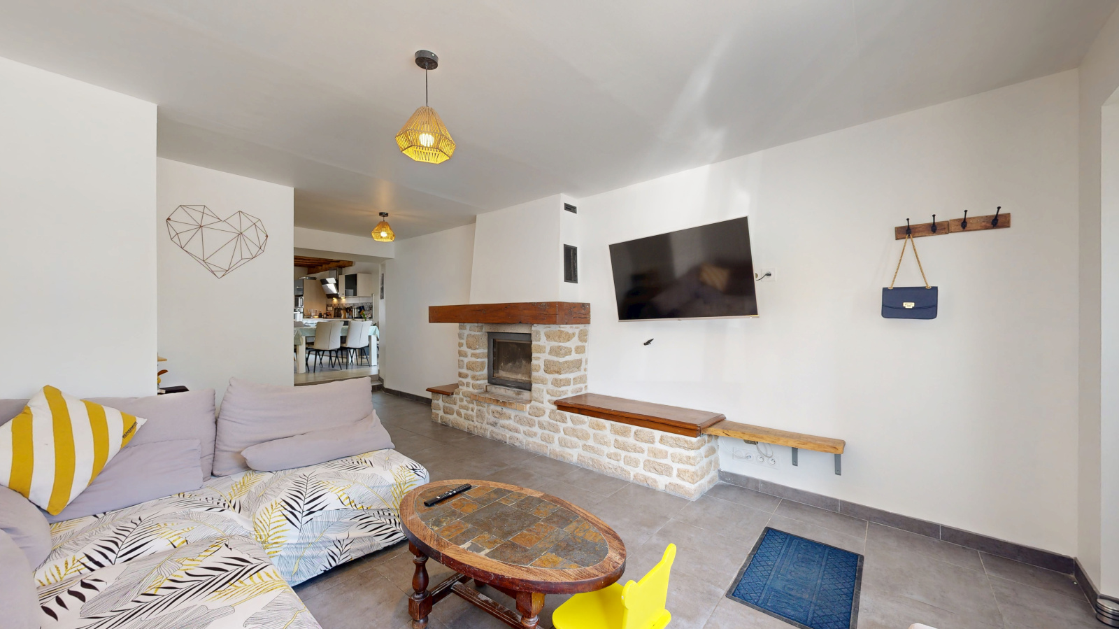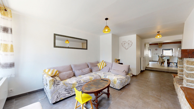 Dès l’entrée, vous découvrez une belle pièce de vie lumineuse avec insert bois, idéale pour des soirées conviviales. Dans son prolongement, une vaste cuisine aménagée et équipée avec coin repas, poutres apparentes et murs en pierre s’ouvre directement sur une cour aménagée avec terrasse, parfaite pour profiter des beaux jours. wc