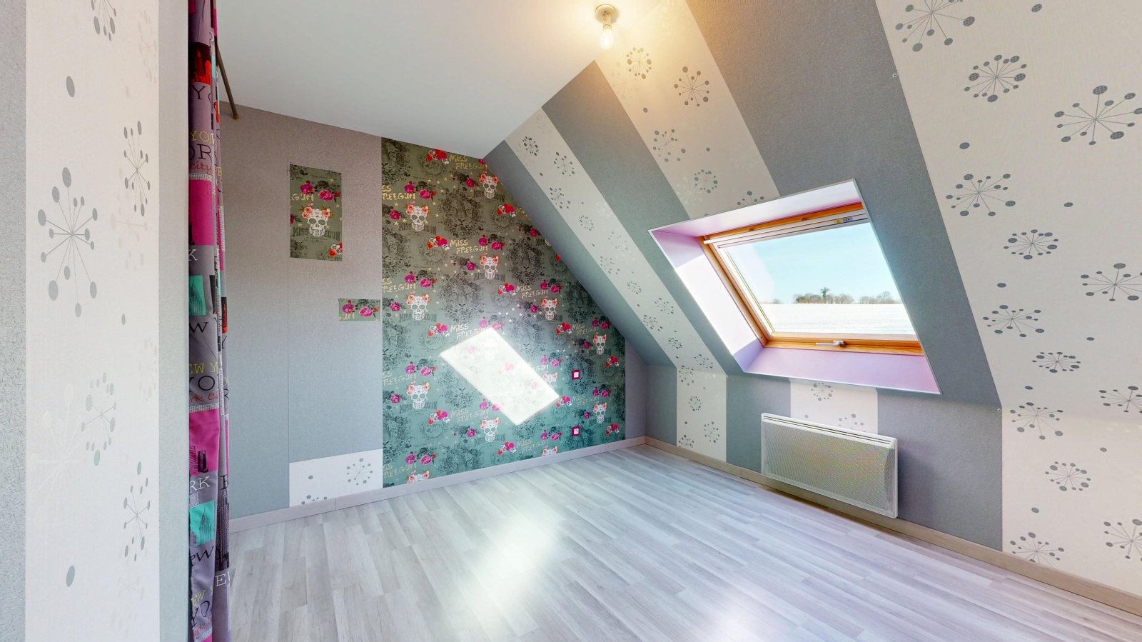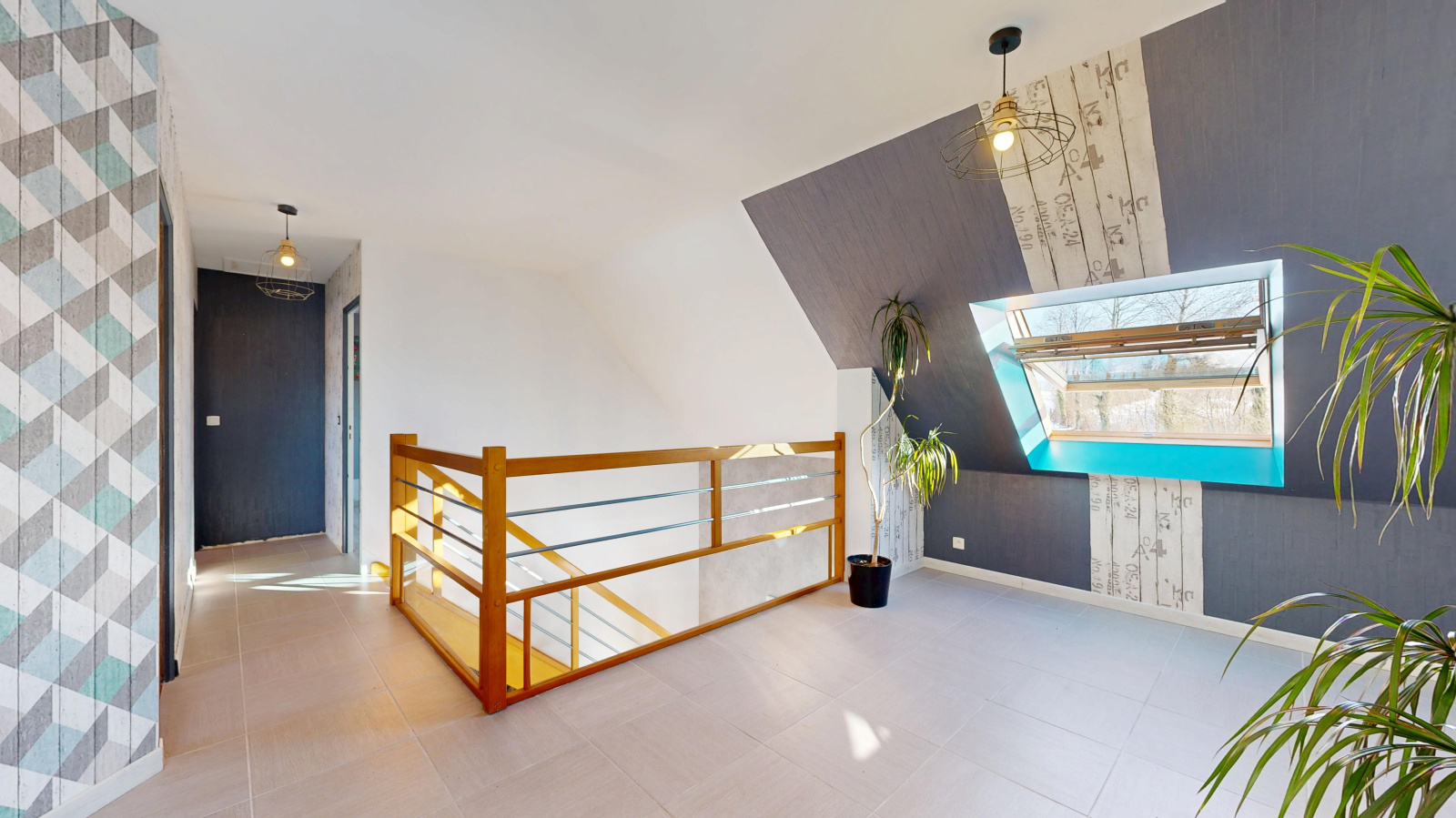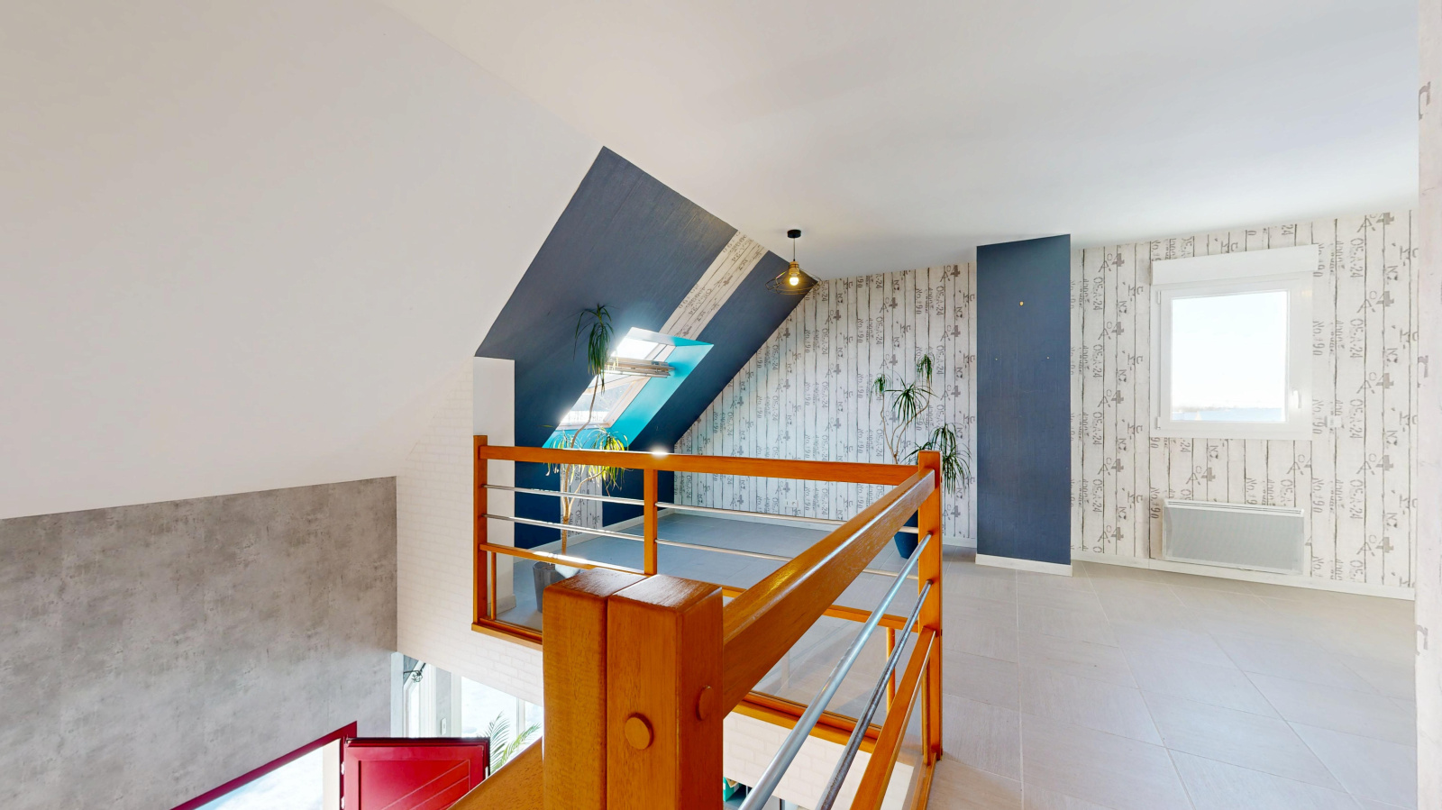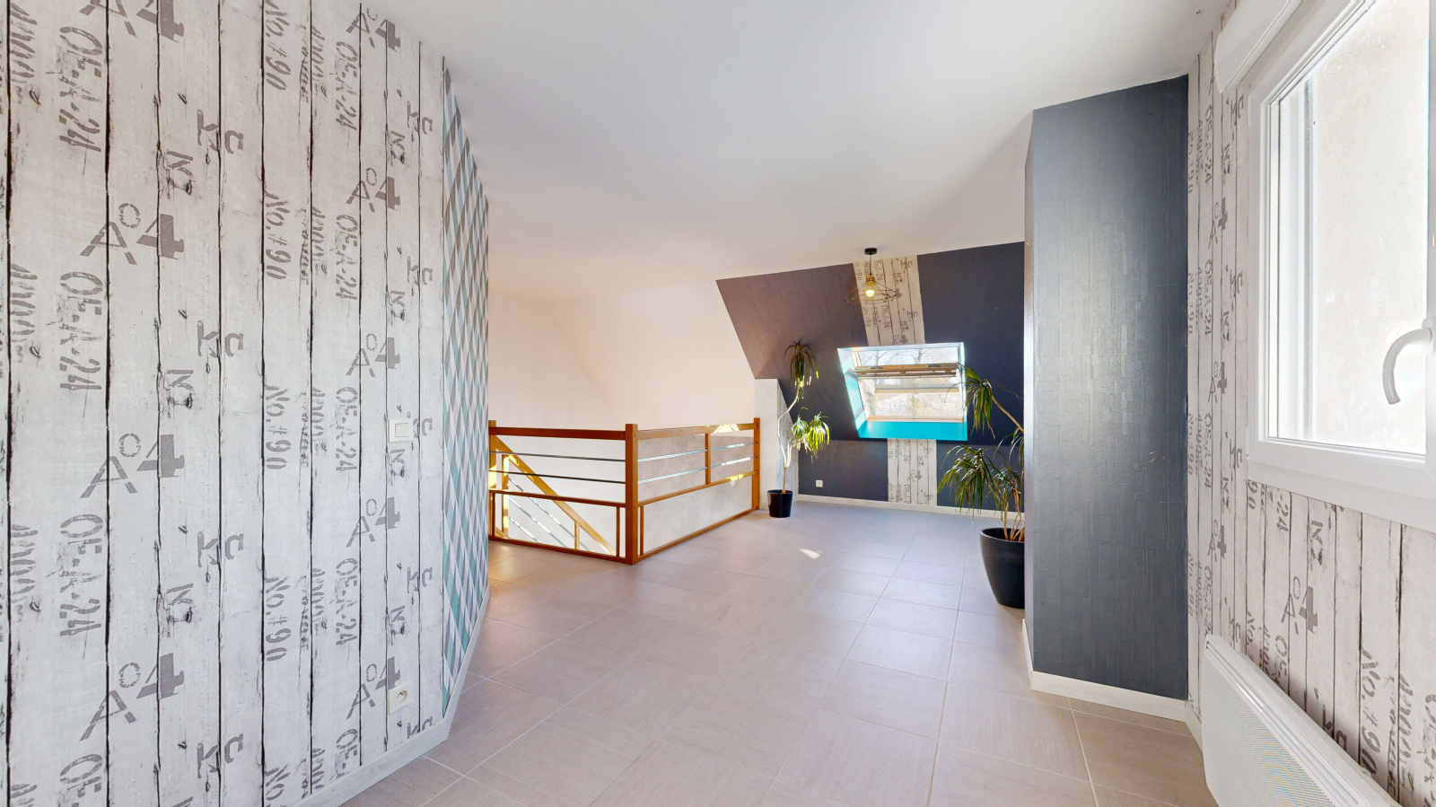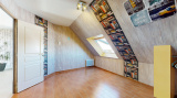 L’étage accueille trois chambres ainsi qu’un grand espace en mezzanine, pouvant être aménagé selon les besoins (bureau, salle de jeux, espace détente). Le chauffage y est assuré par radiateurs électriques.